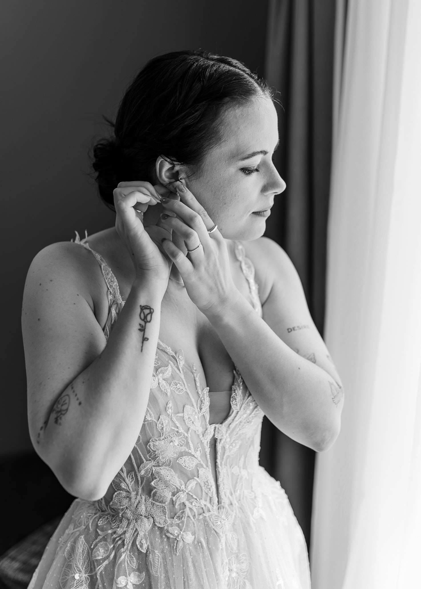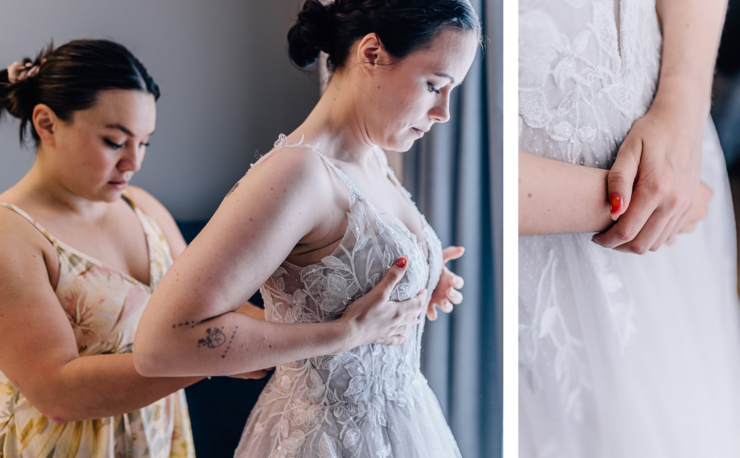Der Tag startete mit: Regen. Die Wetterprognose war nicht sonderlich gut und demnach war auch die Stimmung beim Getting Ready der Braut im Hotel ein wenig angespannt. Im August wünscht man sich halt doch einfach eine Sonnenhochzeit, oder?